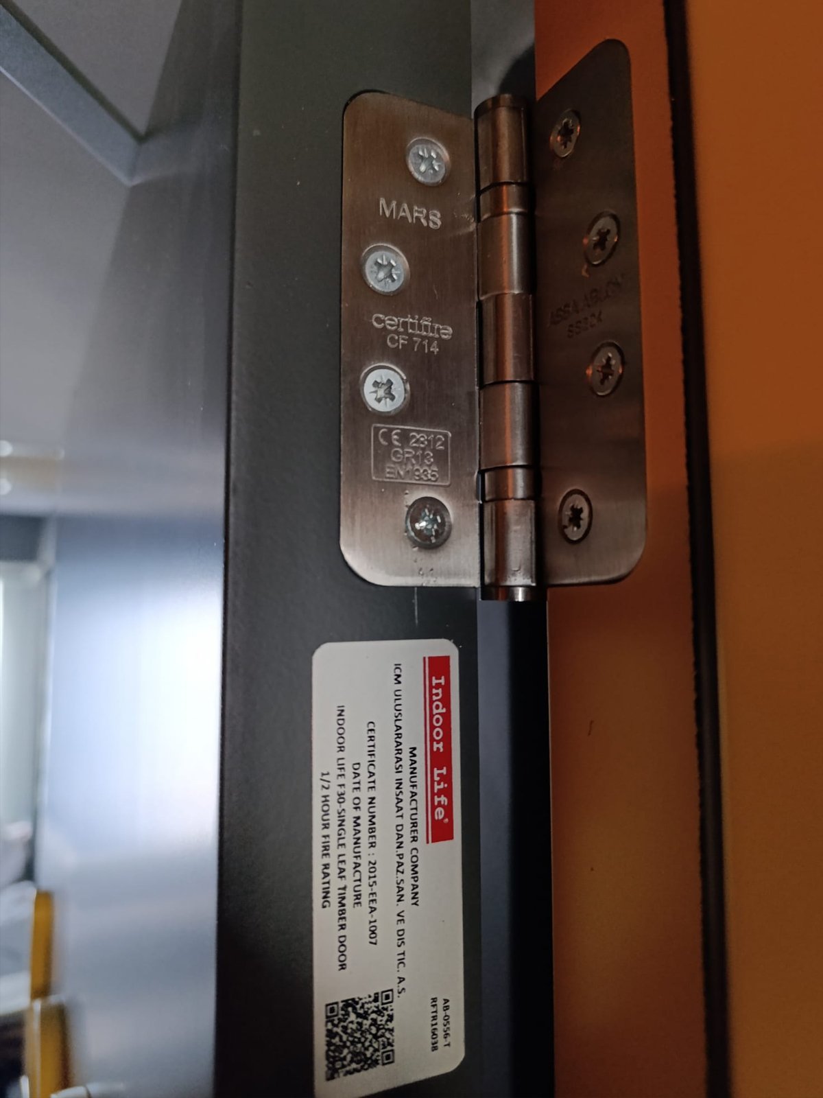 EI30-S 31,5 dB Antrasit Yangın ve Duman Dayanımlı Kapılar Kullanılmıştır.