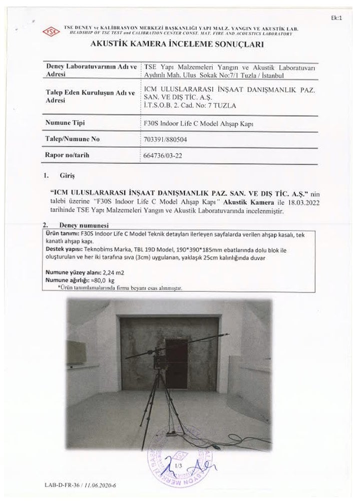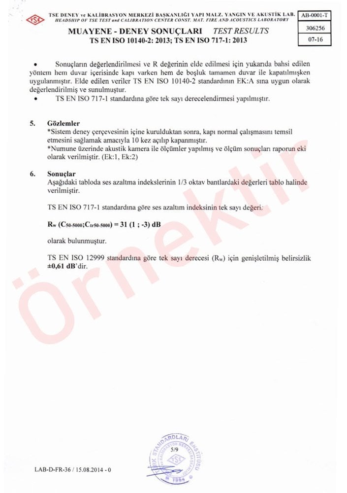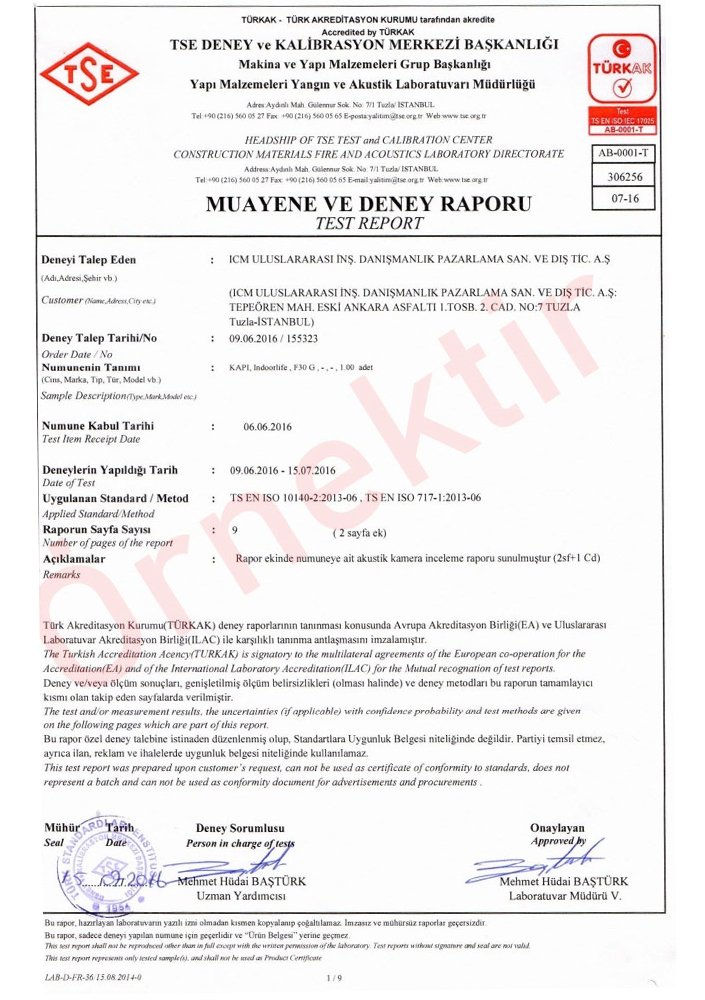 | 31 (1; -3 ) dB Ses Yalıtımlı Kapı Raporu | 31 (1; -3 ) dB Ses Yalıtımlı Kapı Raporu | 40,3 dB Ses Yalıtımlı Kapı Raporları |