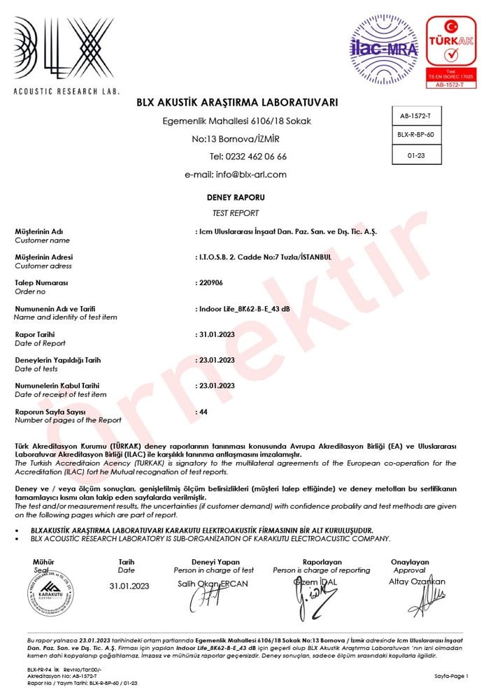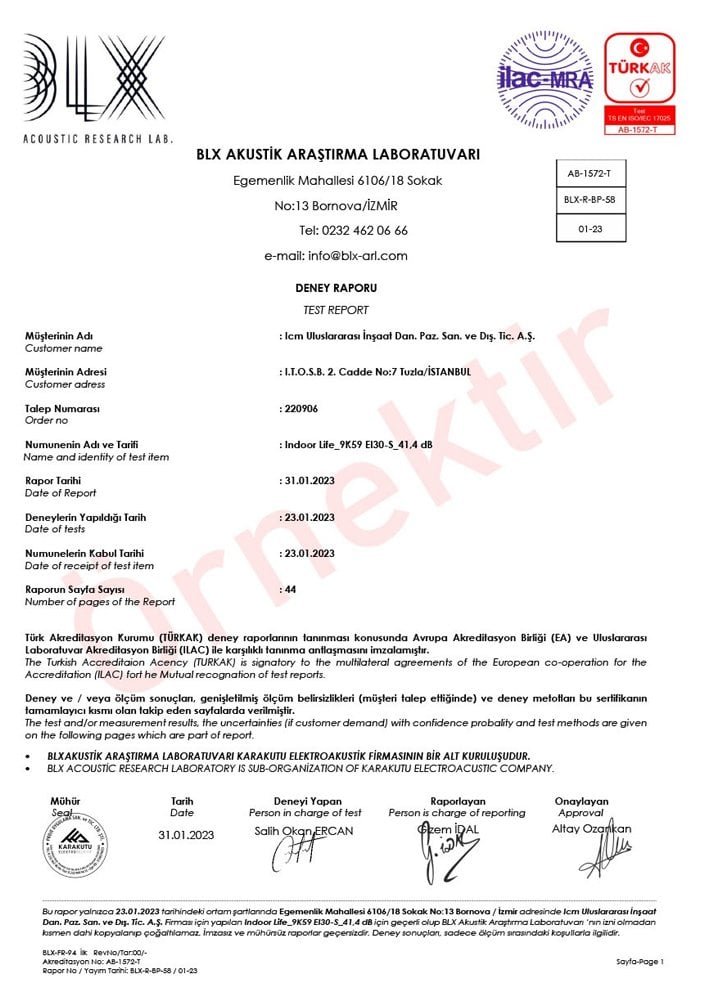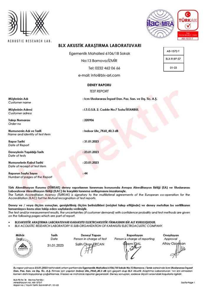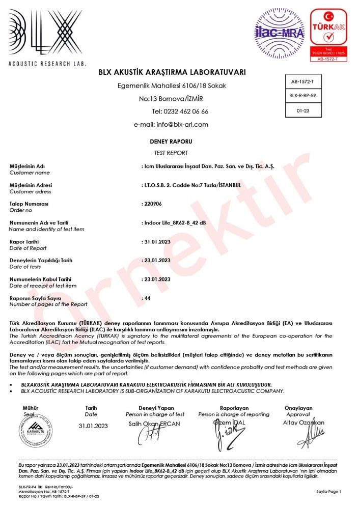 | 41,4 dB Ses Yalıtımlı Kapı Raporu | 42 dB Ses Yalıtımlı Kapı Raporu | 43 dB Ses Yalıtımlı Kapı Raporu |