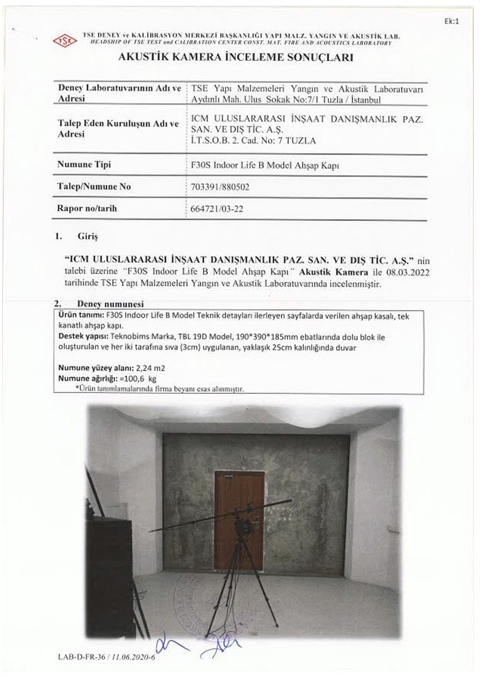 | 37,4 dB Ses Yalıtımlı Kapı Raporu | 36,8 dB Ses Yalıtımlı Kapı Raporu | 35,8 dB Ses Yalıtımlı Kapı Raporu |