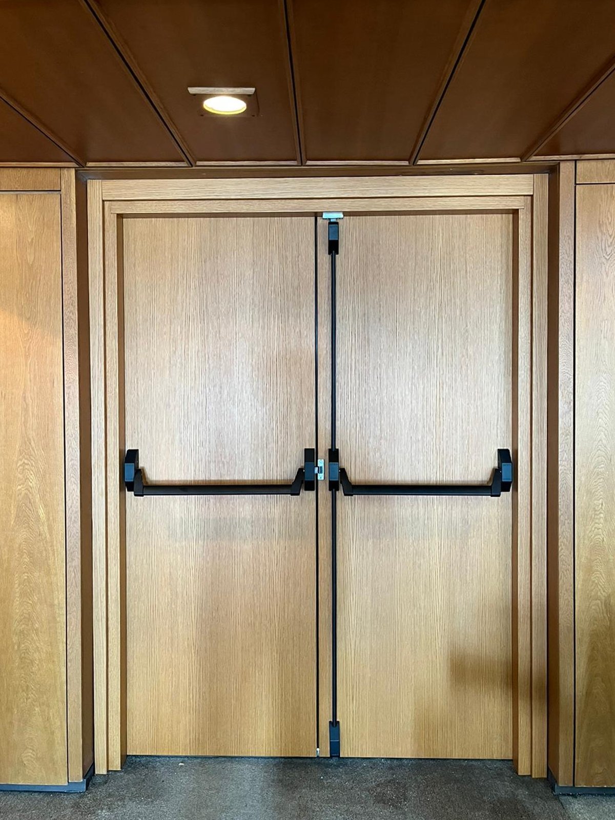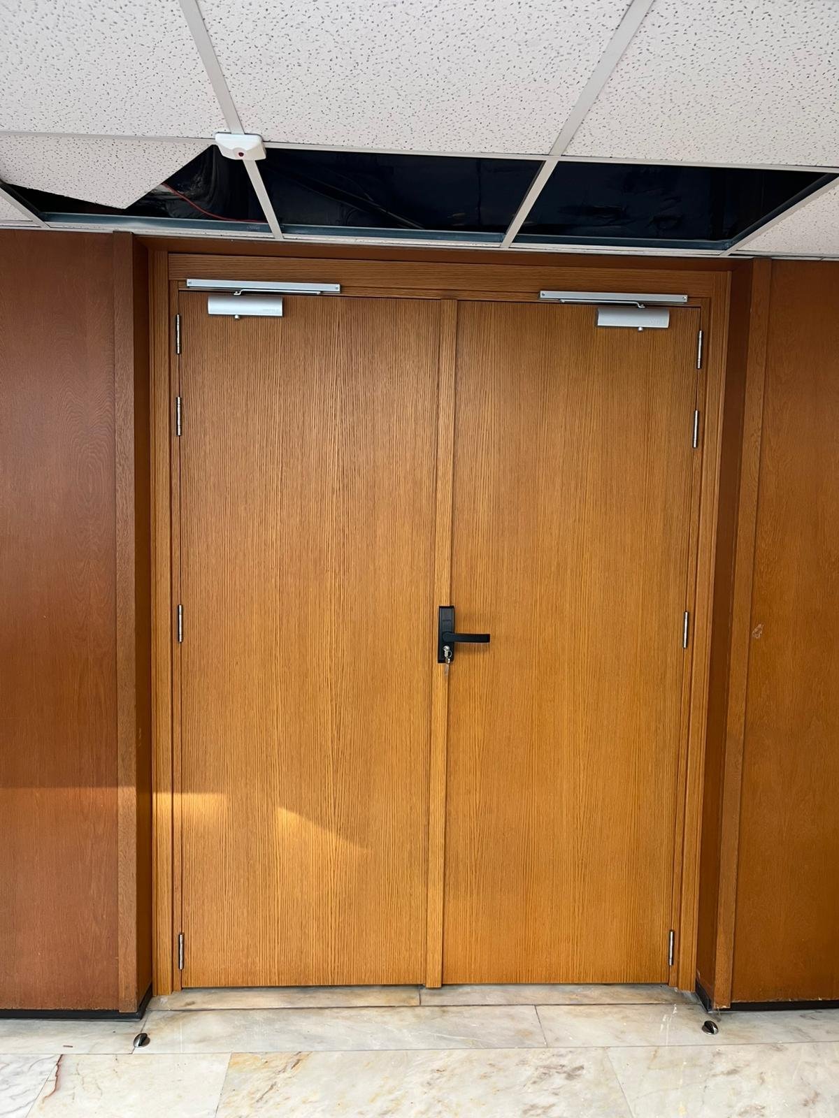 Yangın ve dumana dayanıklı ahşap kapılar kullanılmıştır.