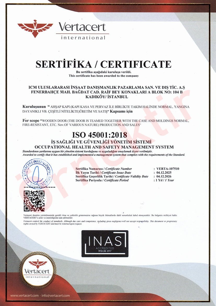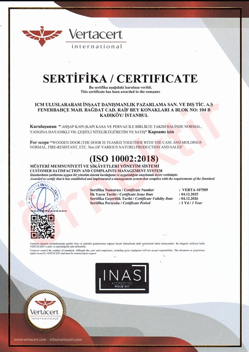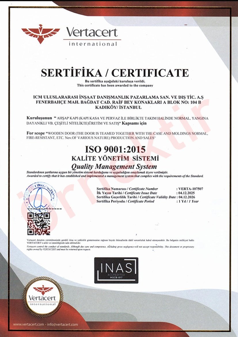 Yangına Dayanıklı Ahşap Kapı Uluslararası Sertifikaları