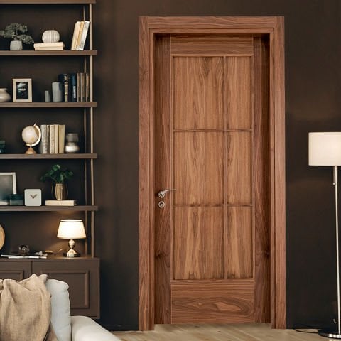 Almila Doğal Ceviz Ahşap Plakalı Kapı