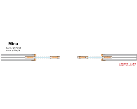 Mina Camlı 2 Kanat Duvar İçi Sürgülü Ahşap Kapı