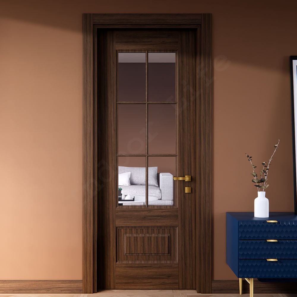Troya Camlı Model Doğal Ceviz Ahşap Kapı